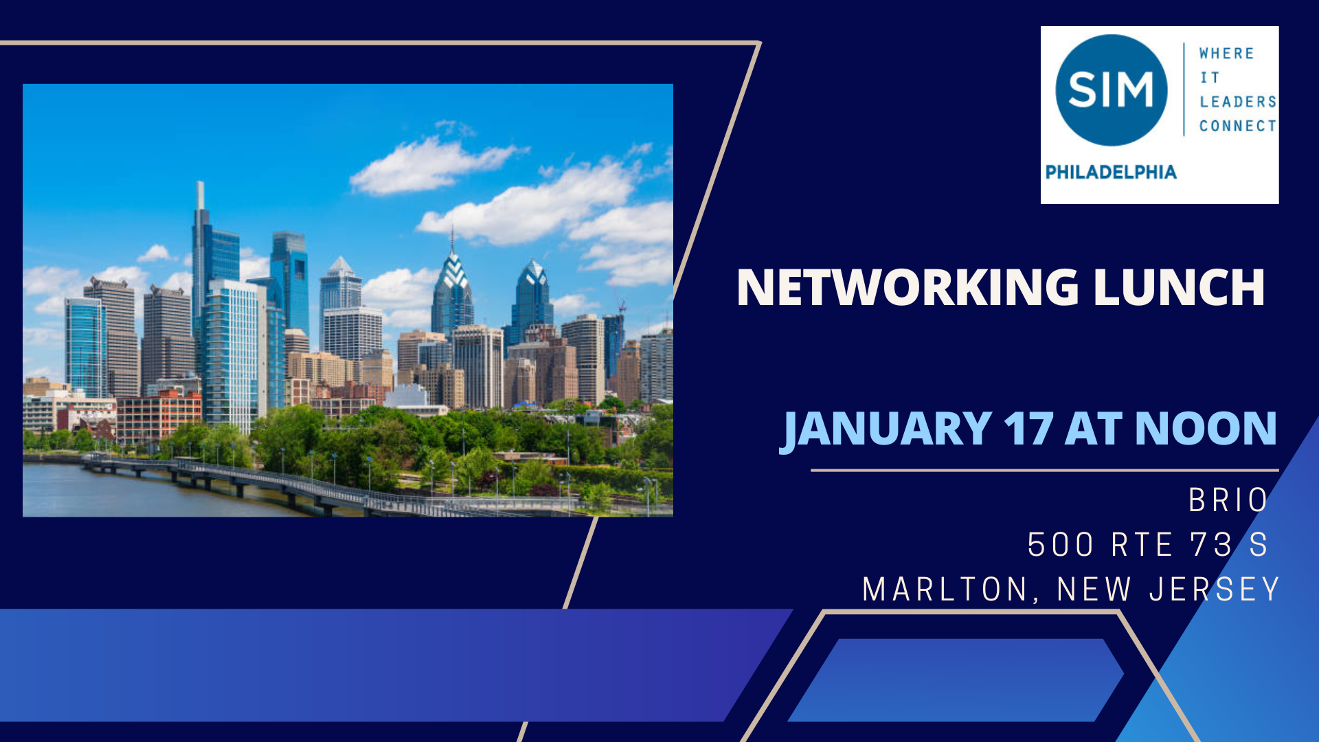 Grab your lunch and catch up with SIM Philadelphia colleagues for casual conversation - both business and pleasure. Hosts: George Rears and Greg Barrett